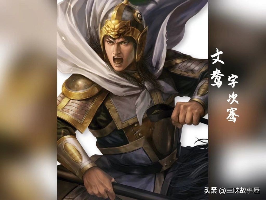 号称三国晚期第一猛将,曾率军突袭司马师大营,无人能挡,吓得司马师眼珠崩裂,乐嘉桥边,面对几百名魏军,文鸯来去如风,单枪匹马冲入敌阵,钢鞭所至,敌将纷纷落马,如此爆表的突防能力,堪比当年七进七出的赵子龙,但由于其出场太晚,除了邓艾,未与其他猛将交过手,故排在最后