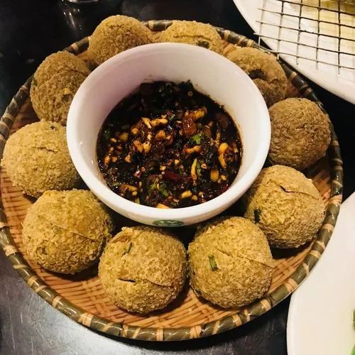 恋爱豆腐果是贵阳有名的风味小吃,属于黔菜,现今在简称“豆腐果”豆腐,菜品表面微黄,辣香嫩烫,开胃生津。走在贵阳的大街小巷上都可以看到的,价格也不贵,和豆腐圆子不同的是,恋爱豆腐果是煤火烤制而成的,经过不停的翻转,避免被烤糊,然后加上抹上香油等,烤好的恋爱豆腐果色泽呈现黄亮色,表面光滑细嫩,格外的有食欲,一口下去,外脆里嫩,满口喷香。