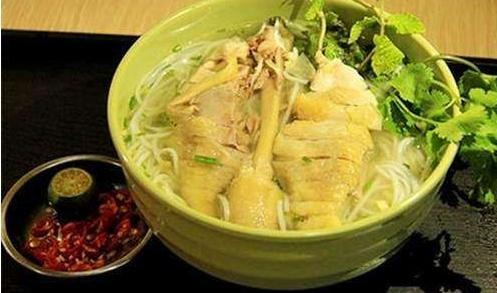 片鸡粉是贵州贵阳市的地方传统名小吃,爽滑微韧,鲜香不腻,获首届“中华名小吃”称号。鸡宰杀治净,漂去血水后放入汤锅内,加姜片、葱节大火烧开,改小火煮30分钟至熟,取出将鸡肉片下,鸡汤留用。取鸡汤150克加盐、鸡精、化猪油调味备用。米粉放入沸水中小火烫至米粉漂起,取出放入碗中,加上烧热的鸡汤、将切好的鸡片30克放在米粉上,撒糊辣椒面、胡椒粉、葱花即可。