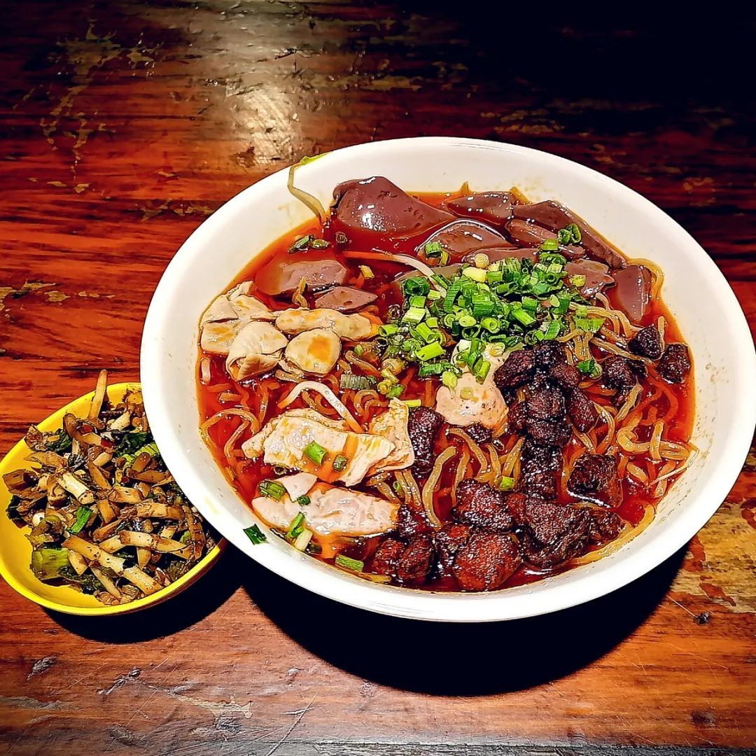 贵阳肠旺面是贵州极负盛名的一种风味小吃,在贵州众多的小吃中,肠旺面有山西刀削面的刀法,兰州拉面的劲道,四川担担面的滋润,武汉热干面的醇香,以色、香、味“三绝” 而著称,具有血嫩、面脆、辣香、汤鲜的风味和口感,以及红而不辣、油而不腻、脆而不生的特点。“肠旺”是“常旺”的谐音,寓意吉祥。贵阳汤旺面入选2019年第十四届贵州旅游产业发展大会评定的“贵州十大名小吃”名单,更是入选由中国烹饪协会主办“中国地域十大名小吃”贵州榜名单。贵阳汤旺面在市区内各小吃街均有卖,其中以龙井巷的“程肠旺”最为代表。