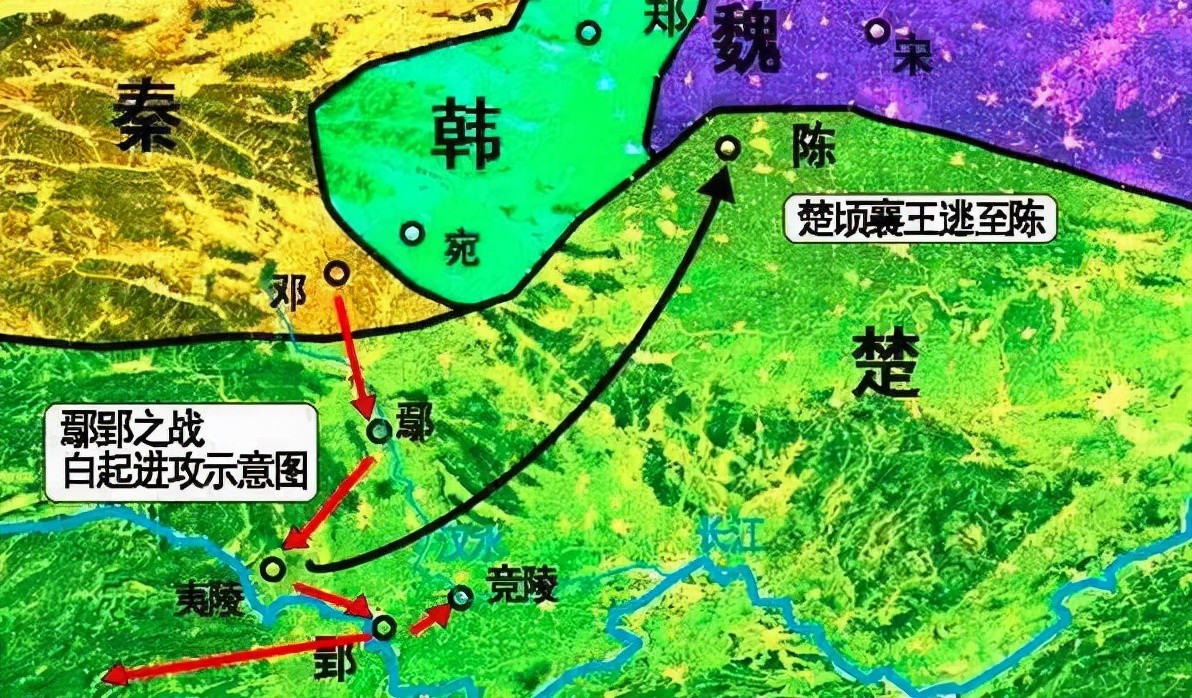 在这场战役中,秦军穿插到楚军背后,采用开山挖渠之策水淹郢都,大破楚军,攻占楚国都城,焚烧了楚王的坟墓夷陵(今湖北宜昌县西南),向东进兵至竟陵,楚军溃不成军。