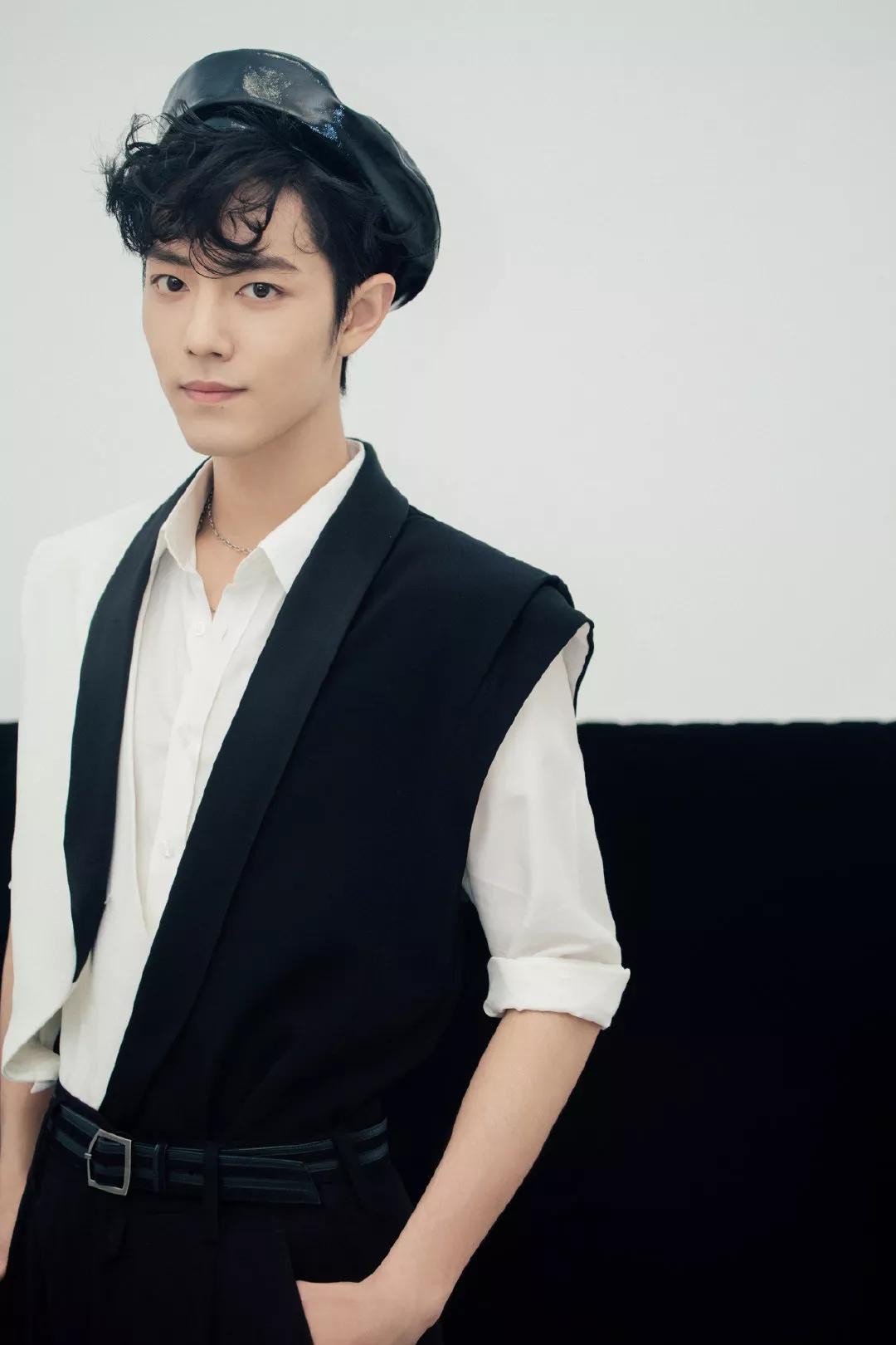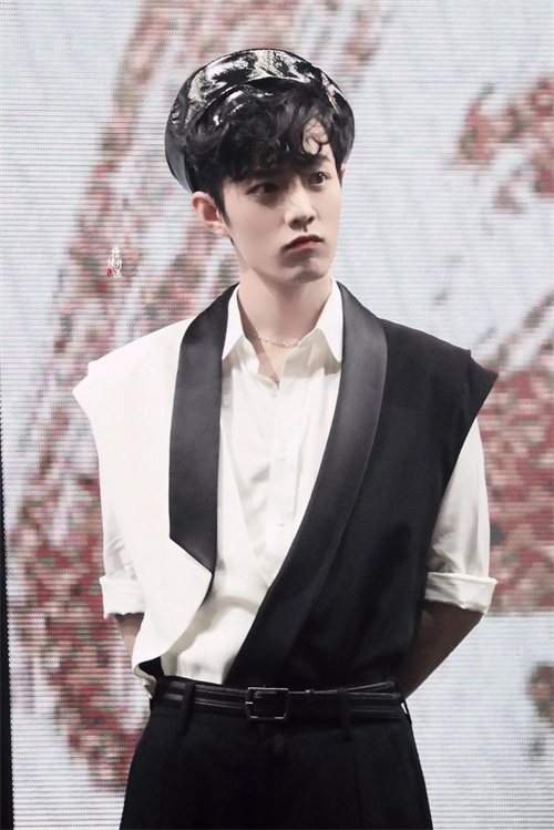 黑白拼接西装马甲,搭配贝雷帽和小卷发,他一定是个精灵,人不可能长这样!