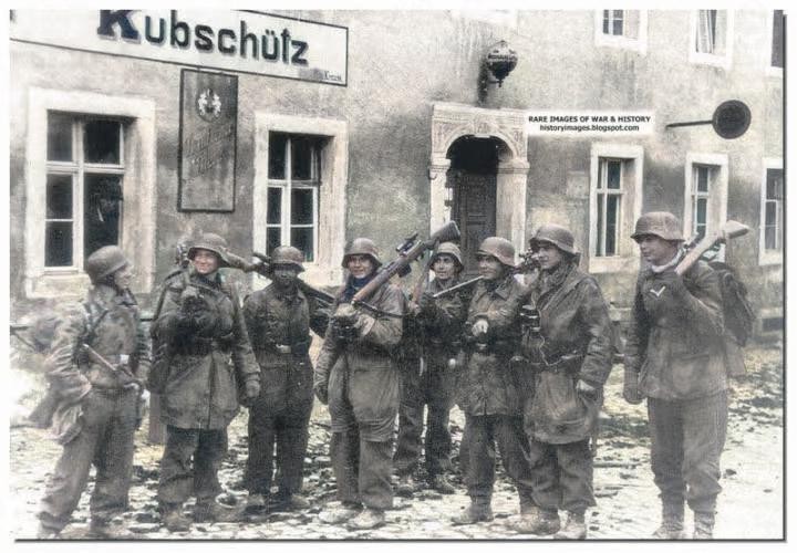 摸索向前推进的德军士兵,分别拿着G43和stg44突击步枪