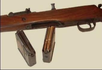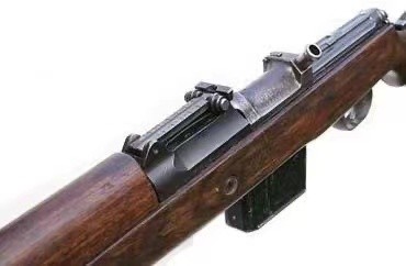 SVT-40是苏联枪械设计师在SVT-38的基础上改进而来的一款新锐步枪,1940年才开始大规模批量生产。该枪采用了导气式自动原理,通过子弹出膛前将高压火药气体导离枪管,用于推动一个活塞向后运动,压缩复进簧并带动枪机完成抛壳,随后枪机在复进簧的推动下向前运动完成下一发子弹的装填。SVT-40的供弹系统是十发弹匣供弹,这套供弹系统要比美国M1加兰德步枪更加优秀。