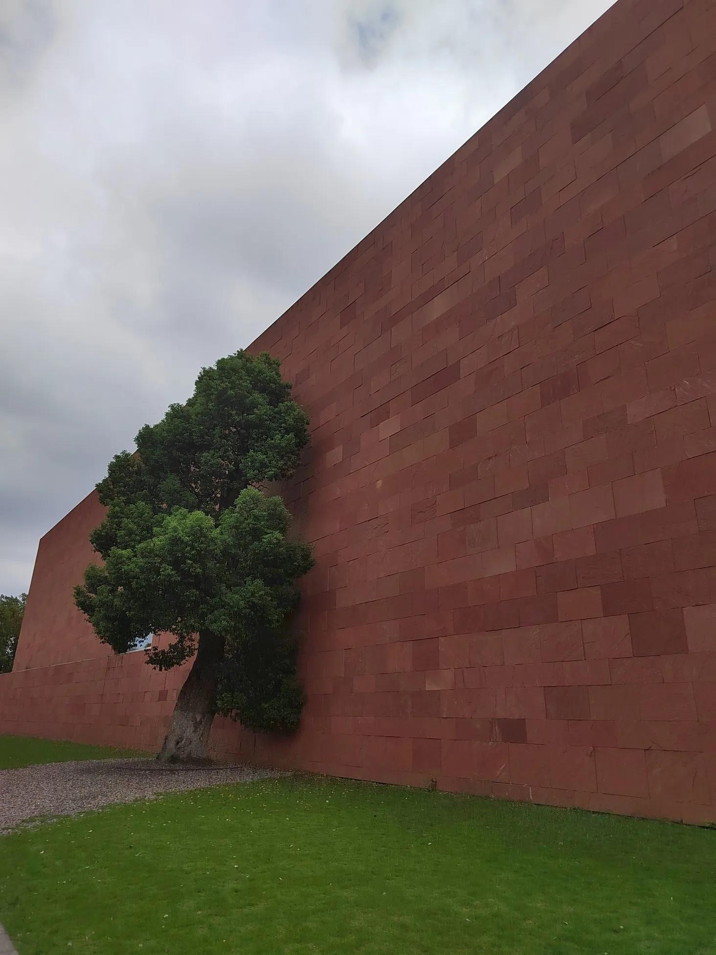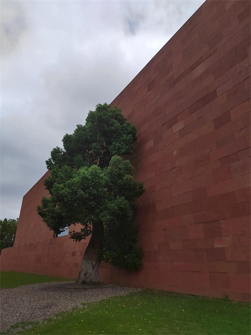 美院的设计博物馆是网红拍照打卡地,它是葡萄牙的建筑师阿尔瓦罗·西扎的作品,立面看似简单,却在不同角度,有不同的光影切割。馆外观的安哥拉红砂岩,在不同的天气,会呈现不同的色调。馆内主色调是西扎最钟爱的白色,几何形的区块构造与动态的界面持续着动态的空间语言,与博物馆相辅相成的还有墙边的一棵老樟树,视觉效果及出片效果都很赞。