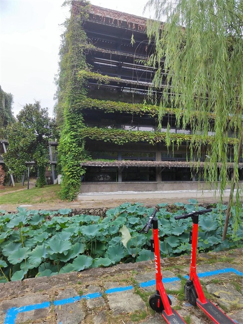 中国美院象山校区也获评英国《卫报》21世纪最佳建筑,同时又被《纽约时报》提及,获得杂志组织评选的“二战以来最重要的25个建筑”,它是本次入选的唯一中国建筑。象山校区总体规划十分注重校园整体环境的意境营造和生态环境保护,借鉴中、西方大学校园的发展模式,创造一个功能分区合理,融建筑、空间、园林绿化、自然环境于一体的校园总体布局,真正建成符合教育旅游要求的园林式、开放式的校园环境。总体布置从地势和环境特点出发,遵循简洁、高效的原则,分区明确,充分考虑未来发展的可变性、整体性。象山山耸水环,风景充满诗性迷蒙,设计者从中国传统造园思想出发,对山水进行整理,建筑环象山和河水而建,校园以中国传统“大合院”的形式呈现,大概是一个“⊃”的形状。中国美术学院象山校园,是最具有山水景致和山水情怀的校园,具有博大气象与诗情画意。可想而知,美院象山校园环境是如此优厚,在象山校里生活和学习的师生是多么幸福。和别的大学校园不太一样,在美院的校园里,有时候会怀疑这里是不是个校园,还是漫步在一个景区内。走在路上,看到校园里的各个建筑和植被静静地伫立在那里,偶有一两个同学骑着平板车驶过,动作是多么的潇洒。