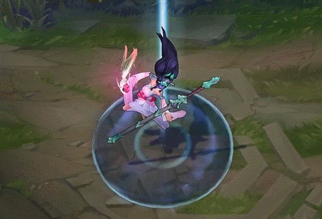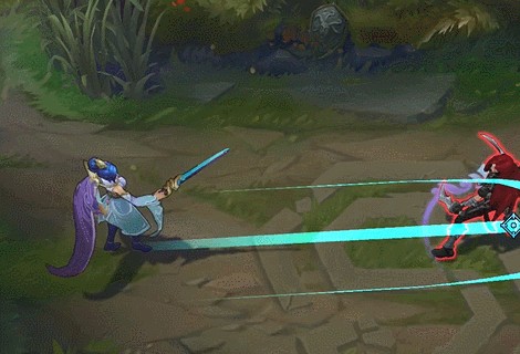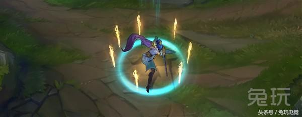 这款皮肤的被动与回血阵的花纹美轮美奂,Q技能与W技能更有御剑克敌之感,配合家园卫士的御剑飞仙效果,俨然一位飘飘欲仙的女侠。