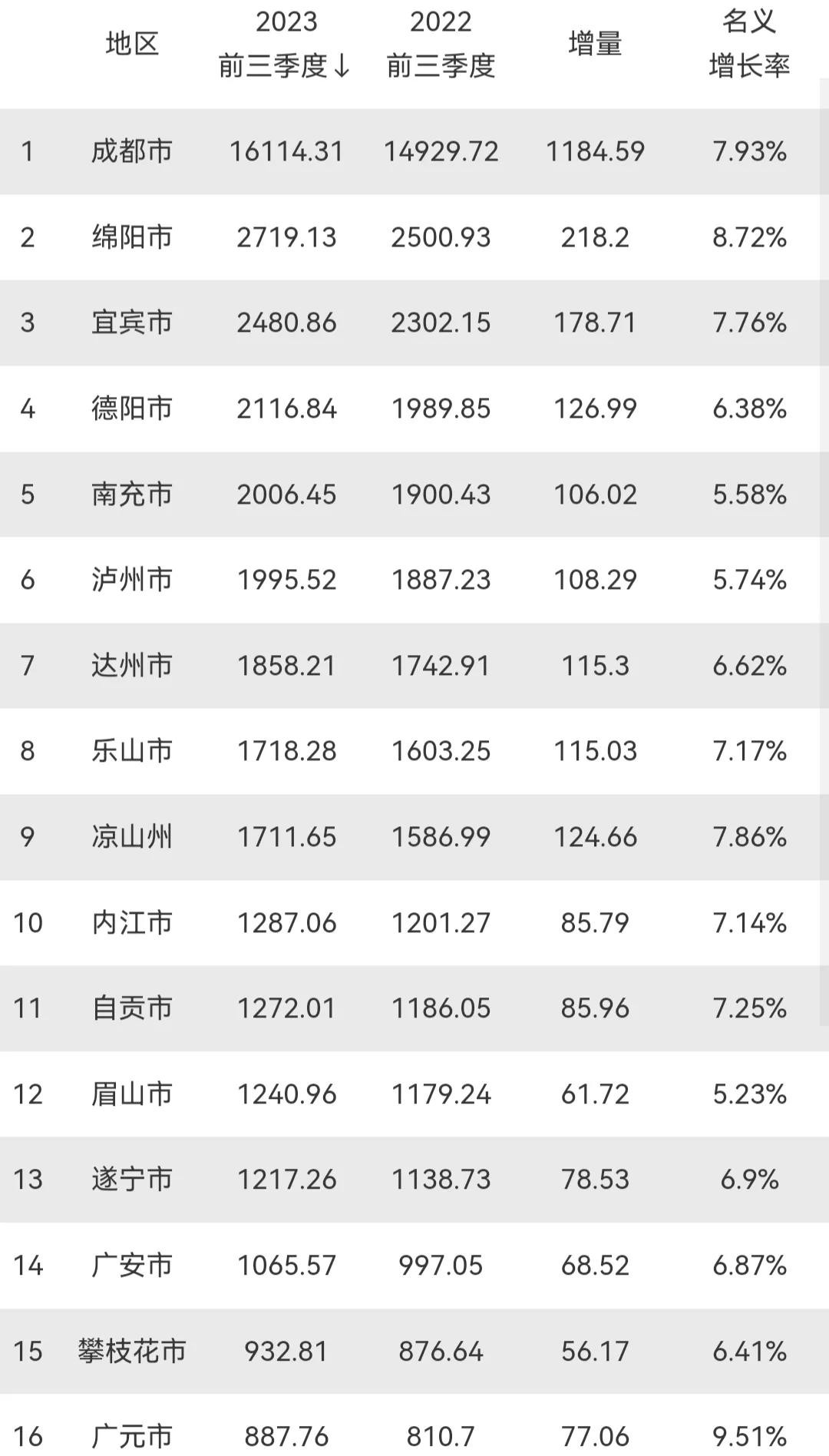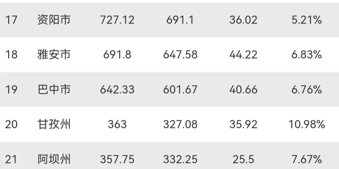 四川21市州GDP大排名:宜宾第3,内江领先眉山,巴中位列第19