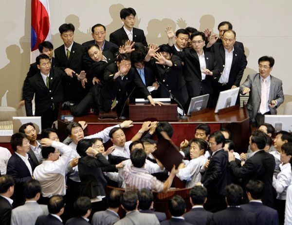 所谓的政治斗争,从来就是和双方互搏无异,高层打嘴仗,底层互殴。一般来说,经济文化越发达的国家,在表面上斗争越文明,就比如英国和美国,大都是通过演讲、辩论和各种宣传进行拉票,但是像韩国这样明面上的政治斗争,各大发达国家还是极为少见的!当然,这次韩国的政坛动荡只是一件小插曲,对比之前的血雨腥风,可谓是一场小闹剧。毕竟韩国总统是一件高危职业,几十年来,能善终者寥寥无几,截止现在,还有好几任韩国总统被限制自由呢!
