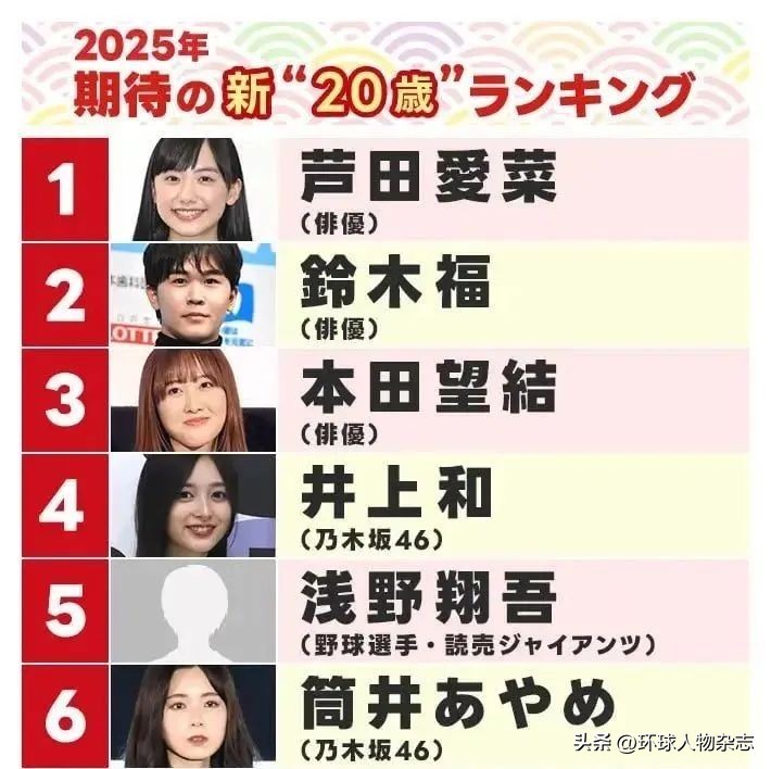 ·芦田爱菜在“2025年期待的新20岁”榜单中排名第一。