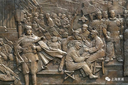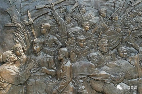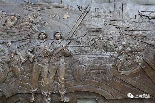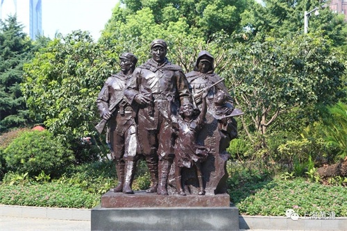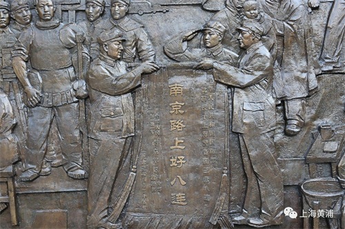 南京路步行街下沉式广场上的“南京路上好八连”雕塑群