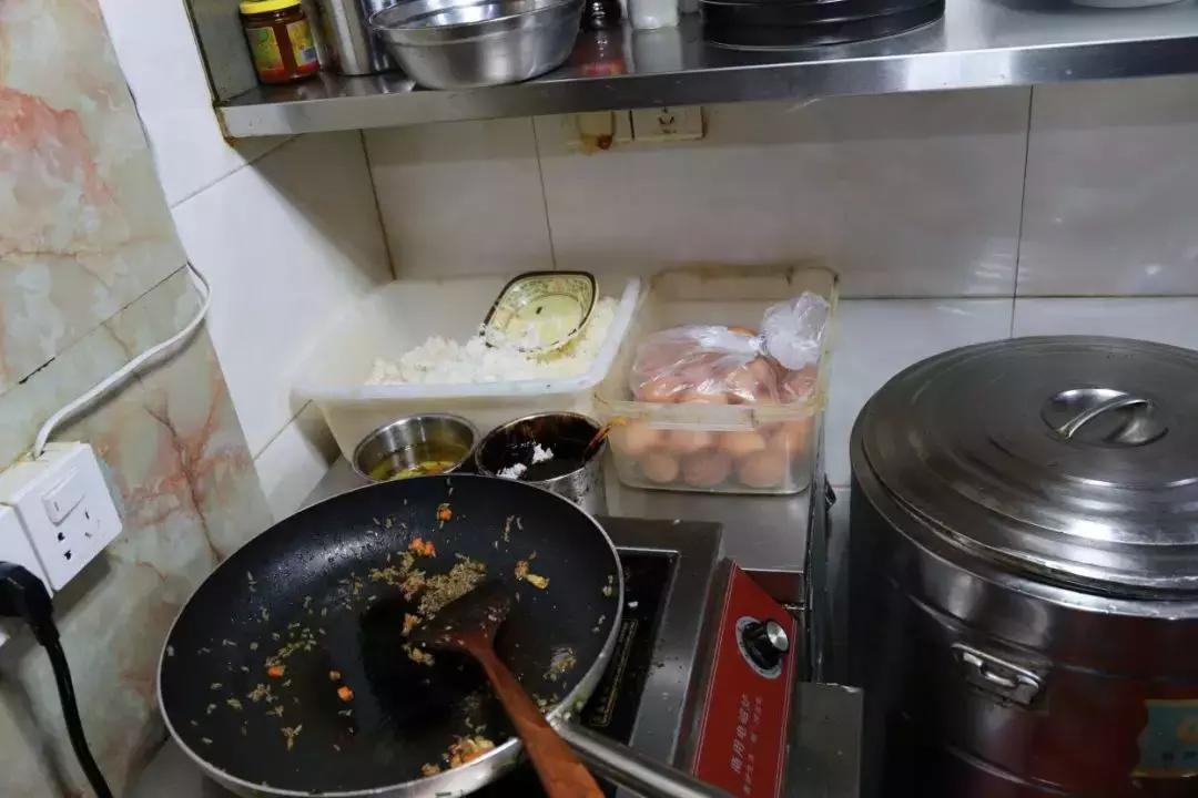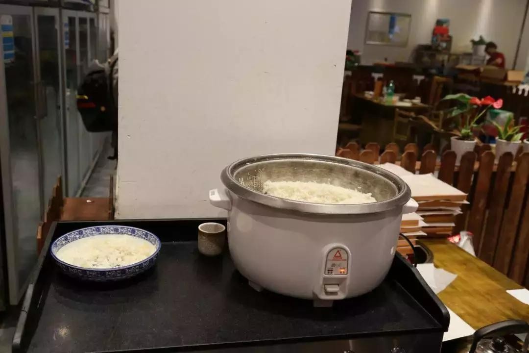 上午9:40,电饭锅中隔夜米饭整晚加热,盘中米饭已有馊味