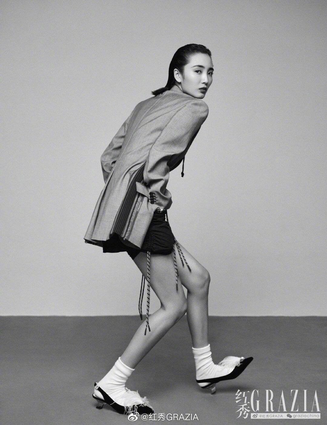 当然这组黑白照片里面的王梓璇可塑形极高,气质真的是绝了,不仅穿搭好看,身材比例也是极好。独特的镜头视角捕捉肢体的律动,产生了可爱又率真的王梓璇。照片里面的王梓璇身穿西装搭配短裤再加上白色袜子和黑色鞋子,又高级又百变。摩登大片。