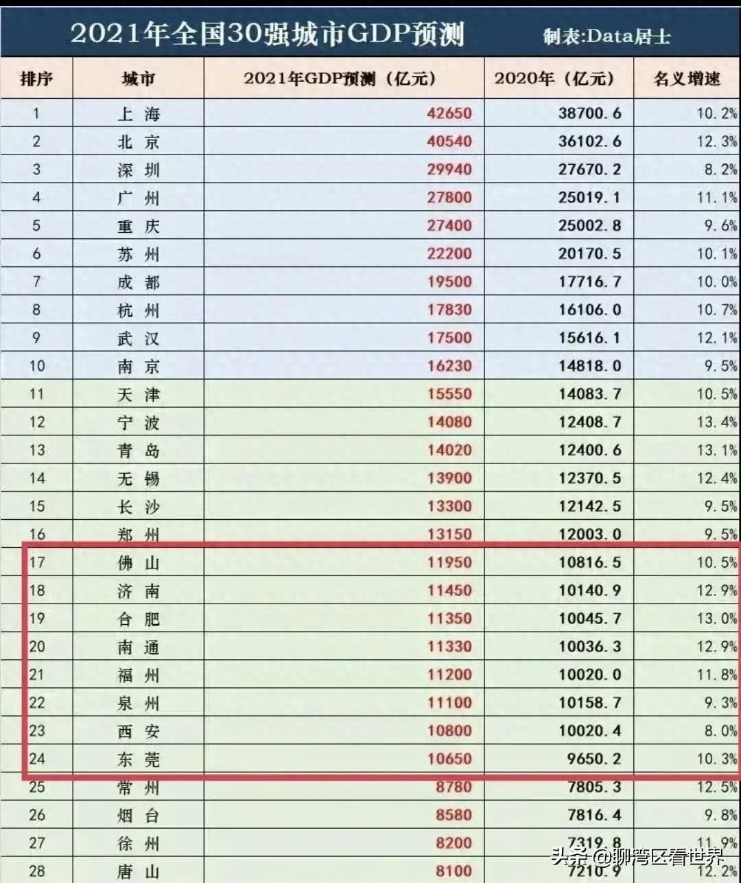 而G24城市中最后一个的城市则是东莞,其经济总量达到1.01万亿元。