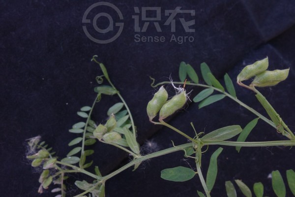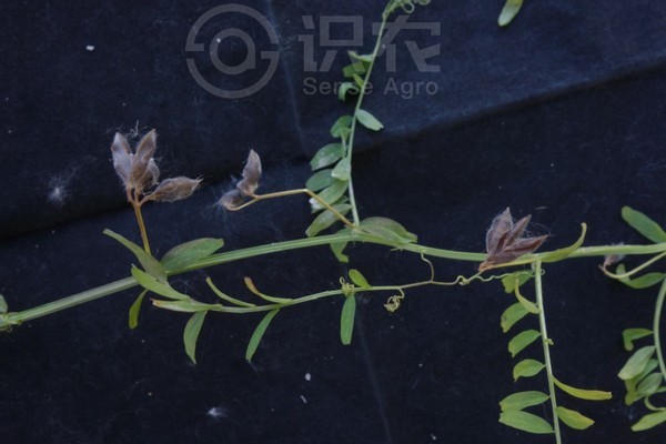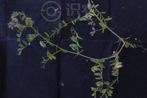 高15-90 (-120) 厘米,攀援或蔓生。茎细柔有棱,近无毛。偶数羽状复叶末端卷须分支;托叶线形,基部有2-3裂齿;小叶4-8对,线形或狭长圆形,长0.5-1.5厘米,宽0.1-0.3厘米,先端平截,具短尖头,基部渐狭,无毛。总状花序明显短于叶;花萼钟形,萼齿披针形,长约0.2厘米;花2-4 (-7) 密集于花序轴顶端,花甚小,仅长0.3-0.5厘米;花冠白色、淡蓝青色或紫白色,稀粉红色,旗瓣椭圆形,长约0.3厘米,先端平截有凹,翼瓣近勺形,与旗瓣近等长,龙骨瓣较短;子房无柄,密被褐色长硬毛,胚珠2,花柱上部四周被毛。荚果长圆菱形,长0.5-1厘米,宽0.2-0.5厘米,表皮密被棕褐色长硬毛;种子2,扁圆形,直径0.15-0.25厘米,两面凸出,种脐长相当于种子圆周的1/3。花果期2-7月。