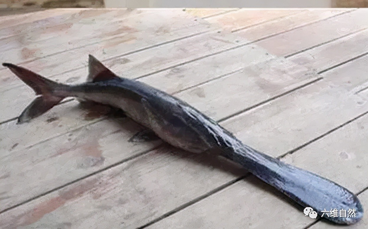 经过渔业部门的工作人员测量:这条怪鱼的体长约80公分、体重2.5公斤,最为明显特征鸭子嘴的鱼嘴。经过辨认确认这条怪鱼是一种外来物种——鸭嘴鲟,原产在美国密西西比河流域,同时鸭嘴鲟作为一种经济食用鱼类,很多地方都有养殖。