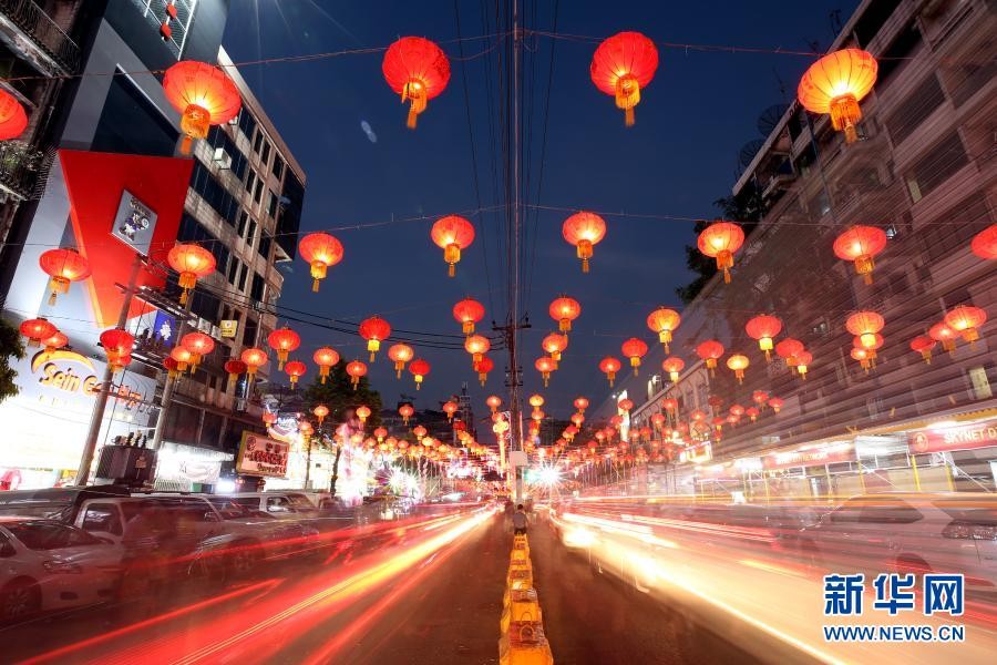 这是2018年2月16日拍摄的缅甸仰光唐人街。