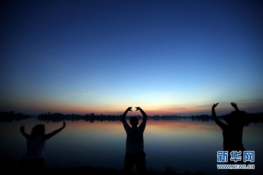 这是2019年8月27日,市民在缅甸仰光茵雅湖边晨练。