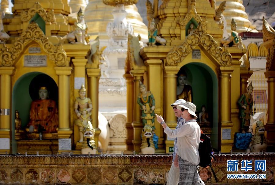 游客在缅甸仰光参观大金塔(2015年2月17日摄)。