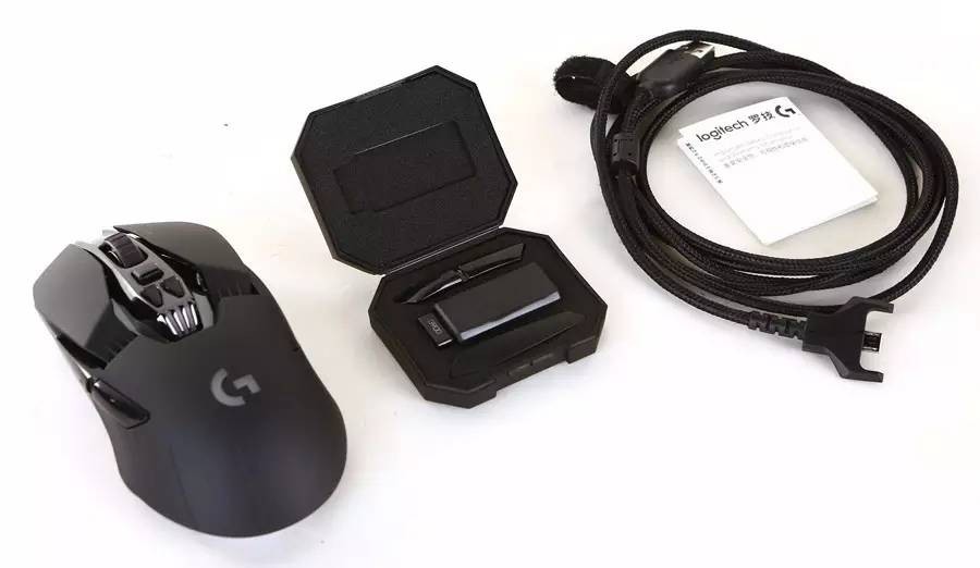 除了鼠标本体之外,包装盒内还有包括有线USB充电线、无线USB传输接口、侧键帽、侧键盖、说明书等配件。