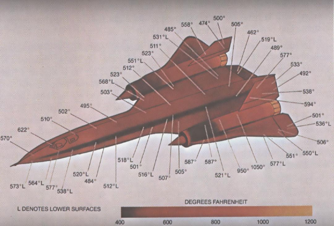 3马赫时遇到的极端温度,意味着飞机上的几乎每个系统都要经过特殊设计。开发了可承受高达350摄氏度高温的特殊润滑剂和液压油,而燃油系统则设计为通过JP-7机身循环来冷却那些高温部位。控制电缆由一种名为Elgiloy的耐高温钢铬镍合金制成(通常用于钟表弹簧)。而所有电气连接甚至都镀上了金,因为金在高温下比其他金属更能保持导电性。