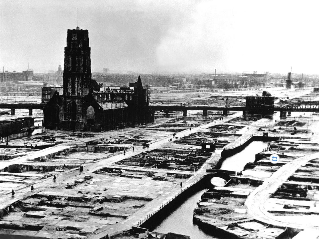 德国陆军在5月10日向荷兰边境发动突然进攻以策应空降兵,法国第7集团军群未能阻止德国第9装甲师的增援。德军攻势势如破竹,荷军难以抵挡。5月13日,第9装甲师抵达了鹿特丹。5月14日,为了尽快拿下荷军坚守的荷兰要塞,空军进行了颇具争议的鹿特丹轰炸,德国第54轰炸机联队的 亨赫尔111中型轰炸机炸毁了鹿特丹市中心。