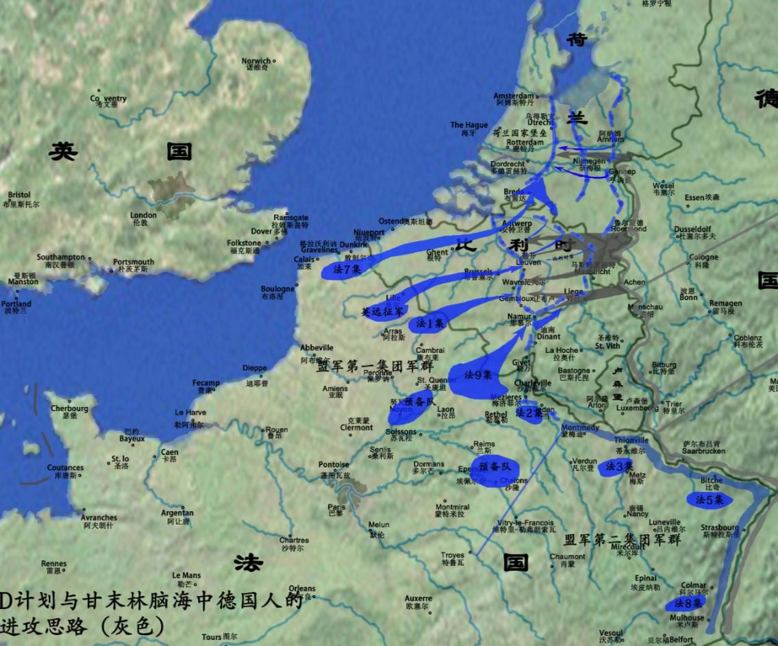 5月10日清晨,德军突击小队搭乘50架DFS-230滑翔机降落在要塞屋顶,使用锥形装药瘫痪了主要炮台。在科克上尉的指挥下,以损失数十人的代价,一举夺取了埃本-埃美尔要塞和阿尔伯特运河上的三座桥梁,俘虏超过1000名比利时士兵(这场特种突击战极其经典,以后有机会再详细介绍作战细节)。埃本-埃美尔要塞成功夺取,霍普纳上将率领由第3装甲师和第4装甲师组成的德国第16装甲军快速通过阿尔伯特运河,向让布卢走廊方向进军。让布卢位于瓦夫尔和那慕尔之间,地势平坦,为坦克作战的理想地区;这一地段也是盟军防线上未设防御工事的一段。法国第1集团军骑兵军司令普利欧派遣第2轻机械化师和第3轻机械化师向让布卢以东的阿尼进军,阻击德军装甲部队,阿尼战役爆发