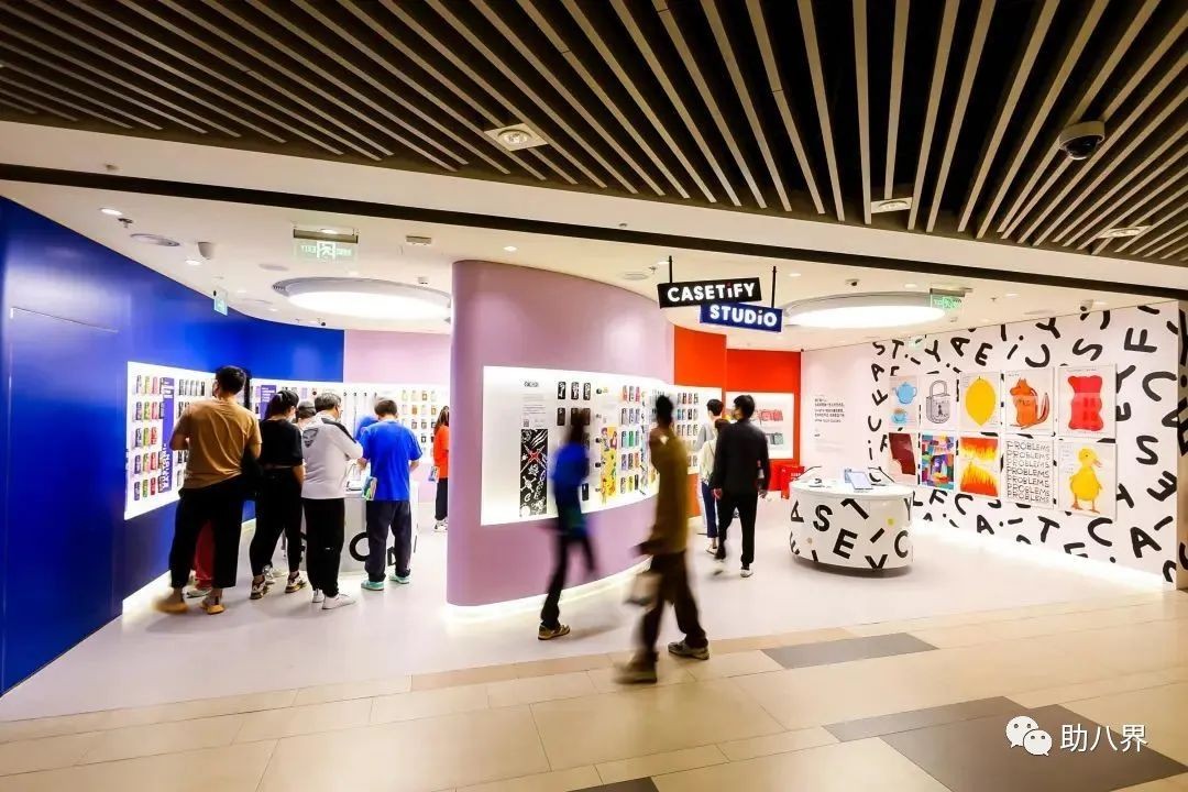 还有Casetify,一家专注于手机壳和其他科技配件的时尚生活品牌。作为中国首店,通过大面积的色块组合和标志性的字母logo元素,带来全新的视觉体验。