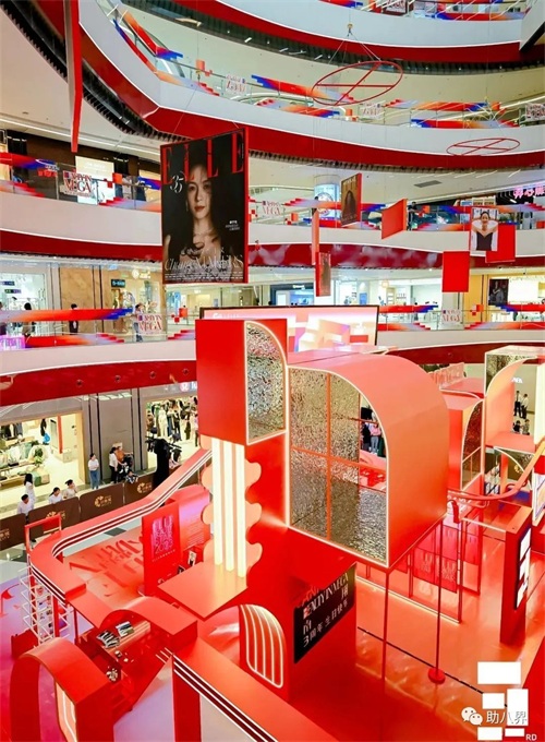 商场还不定期设置IP展览。譬如今年2023年的时尚IP展,以红色装置融入时尚艺术元素。