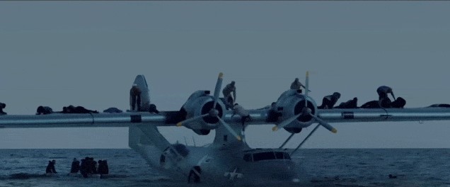 在他们的积极救援下,飞机上很快就挤满了获救的人,夜幕降临时,一共有56人获救,满载的飞机已经受损而无法起飞,但是,至少那些奄奄一息的水手们可以临时躲避一下鲨鱼的攻击了。