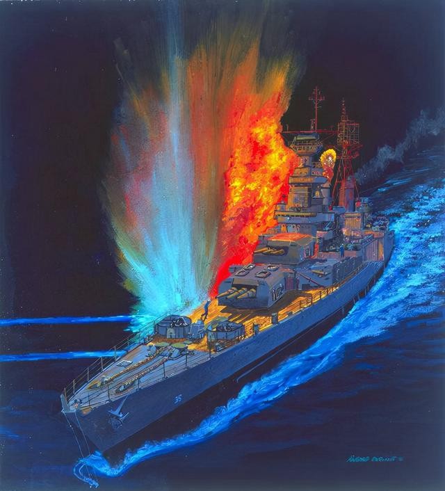 麦克沃伊舰长是最后几个离开军舰的人,他从甲板上直接走到了海里,如同在马路上漫步一样,浸泡在温暖的海水中后,他回头看着他的军舰——巨大的军舰已经完全竖立在了海面,她的螺旋桨缓缓地转动着,月光下,军舰的剪影如同一把巨大的刀刃一样笔直地插入了太平洋底。