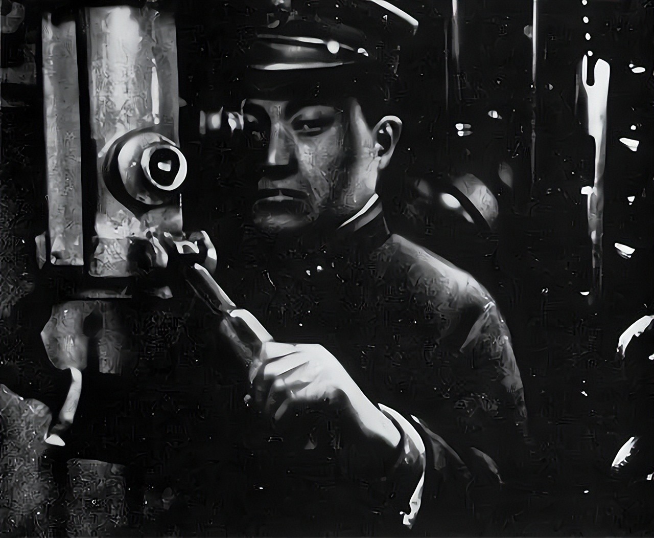 突然,天空变成了明亮的橘黄色,桥本在潜望镜中看到:一股水柱终于在敌舰右舷舰首炮塔附近升起。不久,又有一股水柱在舰尾炮塔附近升起。每当鱼雷命中了敌舰,桥本就喊到:“命中了!命中了!”