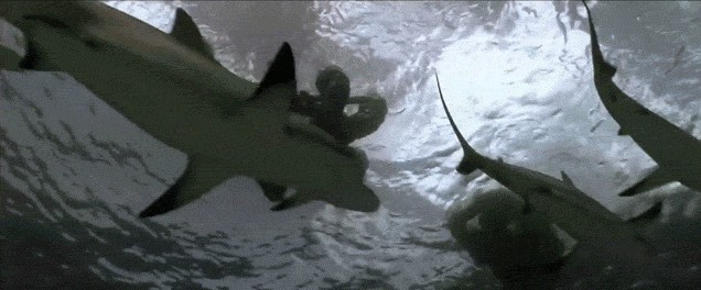 更可怕的是,鲨鱼,大群的鲨鱼来了。