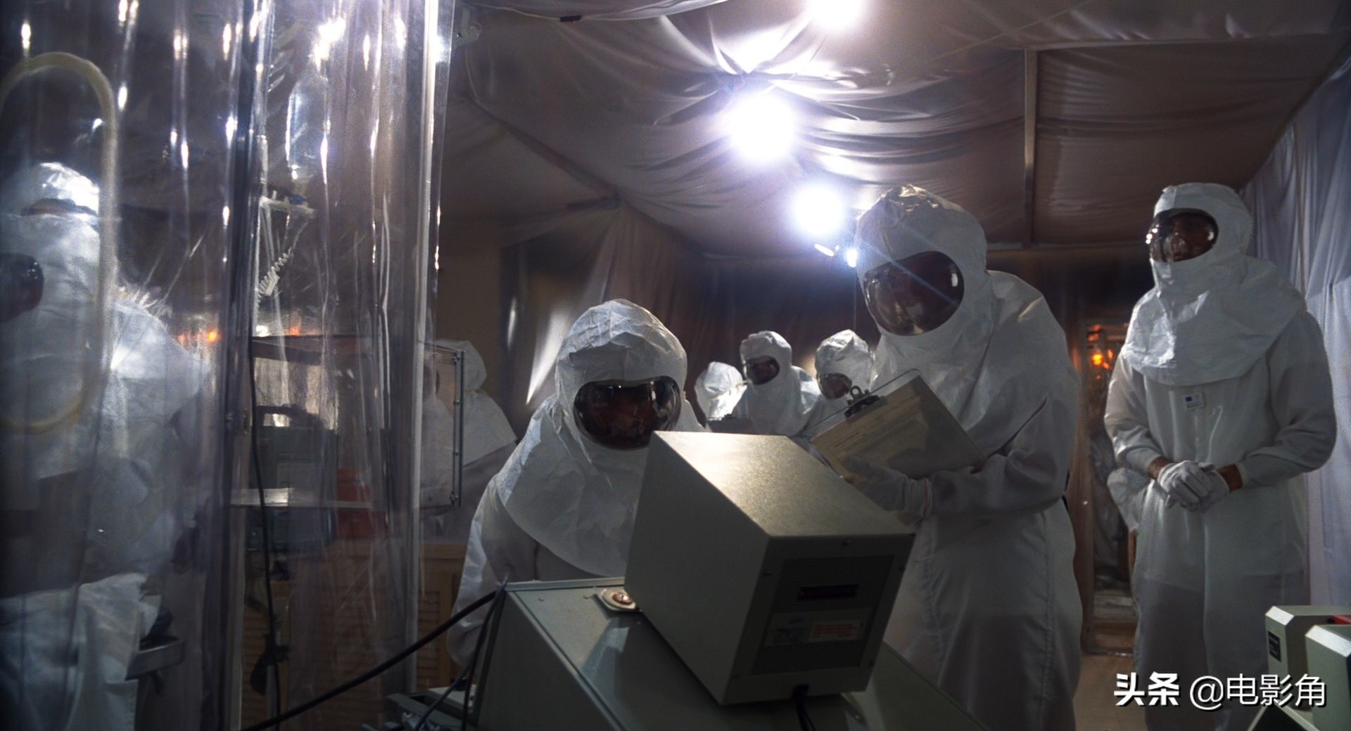 航班延误的原因是航站楼正在进行大规模的建设工作。巨大的塑料布覆盖在脚手架上,圆柱形的管子随处可见,这种单调的环境正是导演想要在电影中呈现的。所以最终他没有把关键的场景设定在医院里,而是决定让政府部门使用他在机场看到的材料遮掩住埃利奥特的家,于是就有了电影中最令人难忘的场景之一。