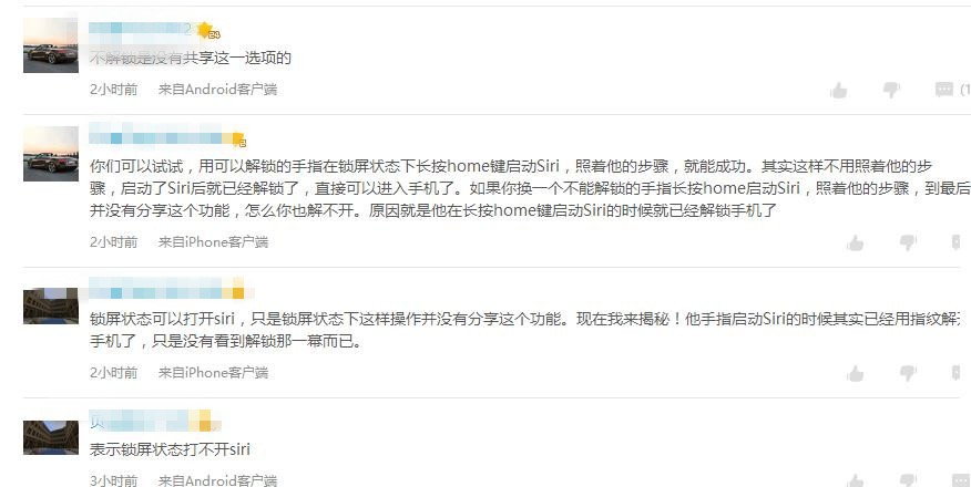从国外的视频来看,带有指纹的iPhone似乎可以通过Siri漏洞直接进入桌面,让人匪夷所思。不过也有部分网友表示了质疑: