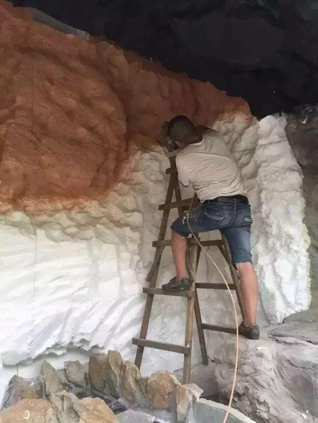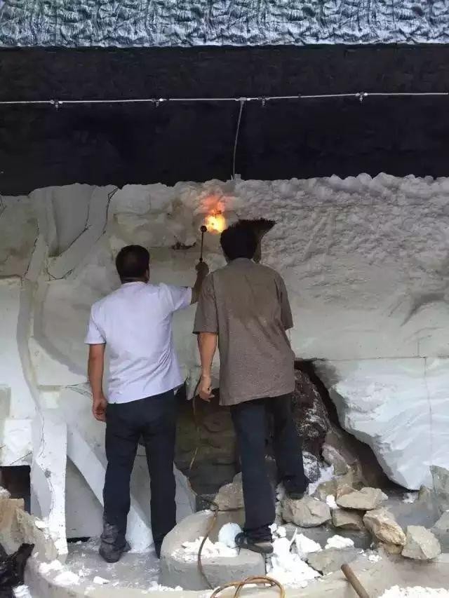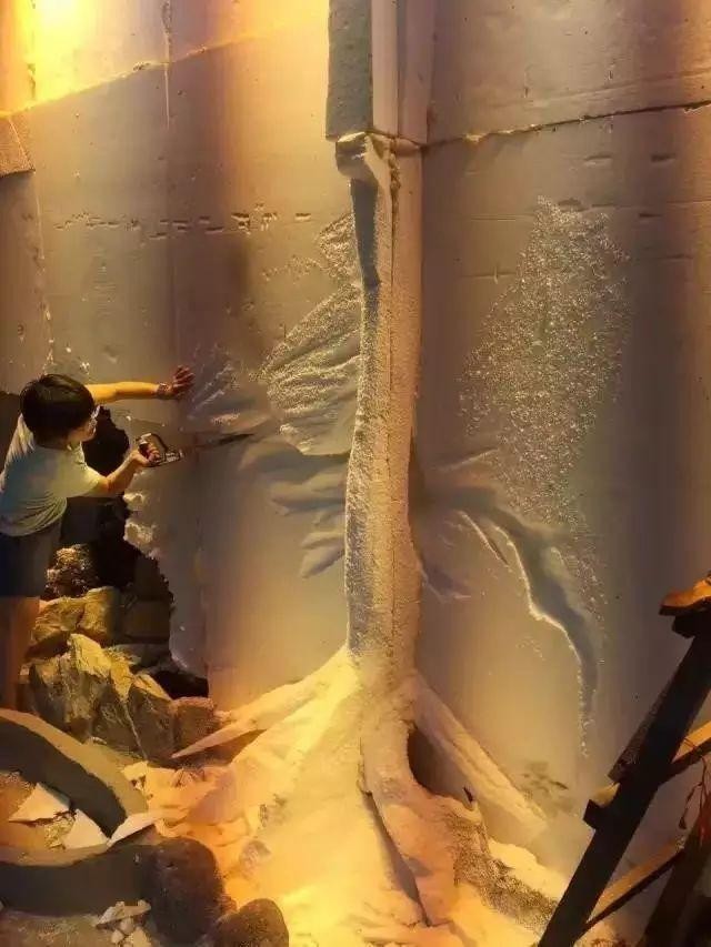 整个背板面积大概有40来平米,为了节约资金,用了高密度、专门用作雕刻的泡沫板,而且这种材质是阻燃泡沫,非常安全。