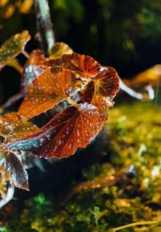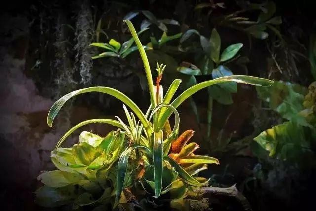 建缸初期,光照应该适当减弱;先使用全部照明的50%,每天照明时间4-5小时;然后用1-2周时间慢慢过渡到70%,每天照明6-8小时;在2周后恢复全光照,每天光照10-12小时。生存靠喷淋,开花靠照明,照明尤其重要,因为它也是雨林缸唯一的能量来源