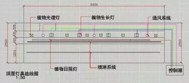飞利浦植物生长专用灯,(专为温室大棚出产的)植物生长灯*4盏;植物光谱灯*6盏;最前端布有LED管*6,为景观照明的投光灯