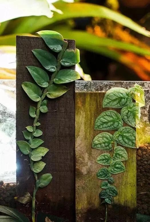 现将植物定植到杉木板上,一个月后植物就在板上生根了