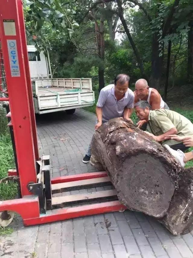 从上图也能够看到主要的骨架是青龙石和沉木,这棵大树桩子可不是正儿八经买来的同样为了省钱,从园子里倒塌的树中,搜罗到一棵长5.5米长的树干,重2-3吨的大树墩子,正好用来做主景