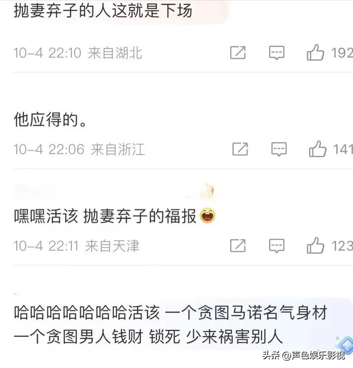 对于这个男子的控诉,大部分网友并没有对他表达出同情之情,相反只是对他进行各种吐槽。网友认为这名男子完全自食其果,他的结局也是自己选择的结果,因为他不顾家庭抛弃妻子和孩子。这种背离家庭责任的行为被认为是不道德和不负责任的表现。