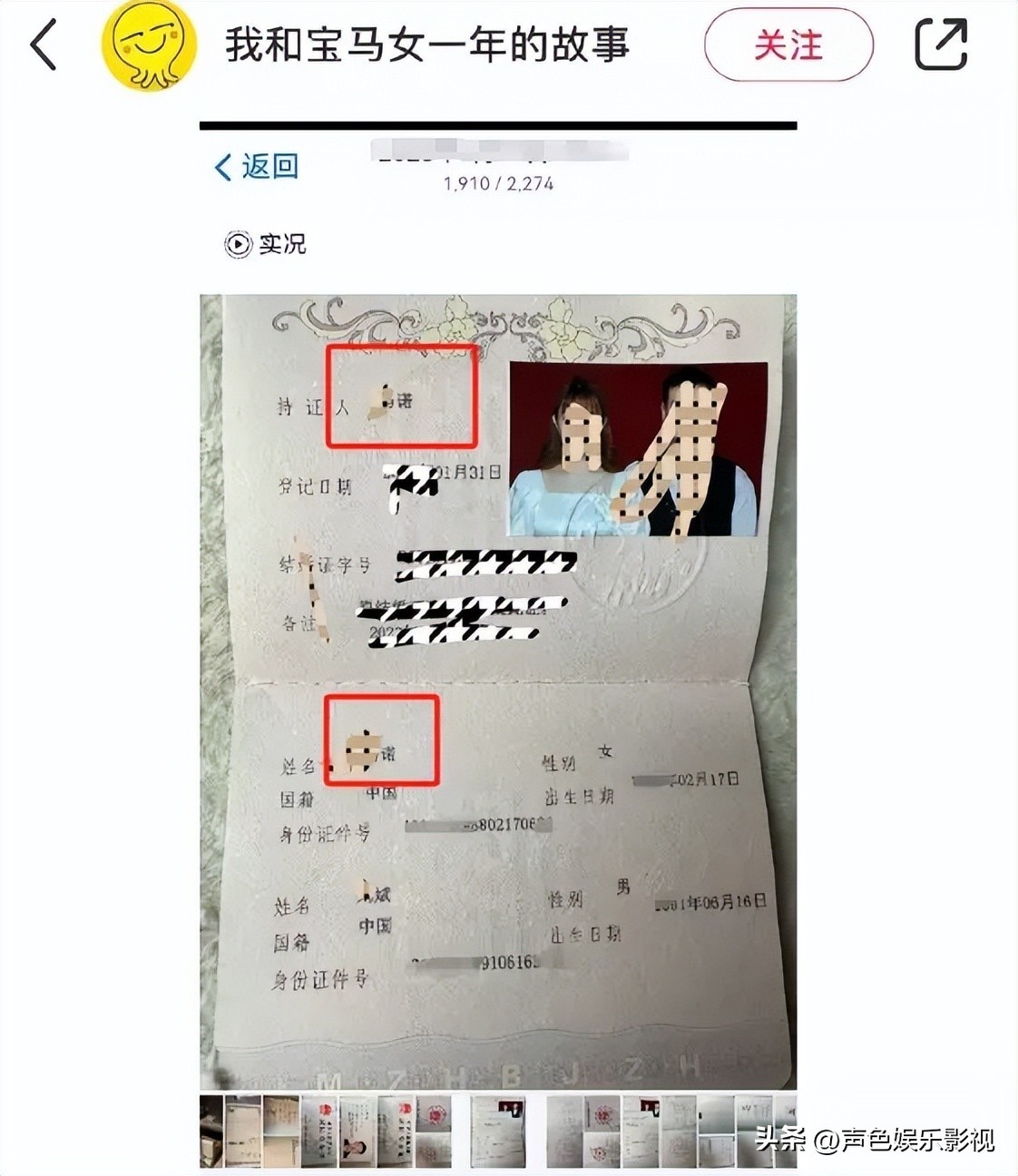 不仅如此,男子还晒出和”M小姐的结婚证,尽管这张结婚证遮挡了一些信息,但还是露出了一个带有“诺”字的名字。