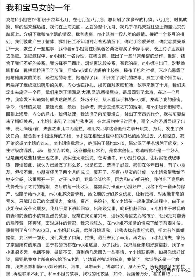 这篇文章详细讲述了爆料者与“M小姐”之间一年的经历。