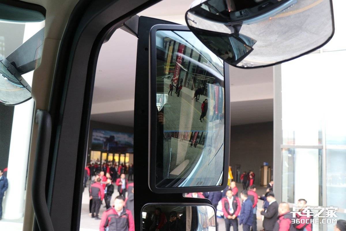 众所周知,货车在行驶过程中存在很大的视觉盲区,尤其是转弯、倒车时,为了减少这部分风险,这款德龙X6000旗舰版还配有360环视,两侧的摄像头分别位于传统后视镜的底座上,