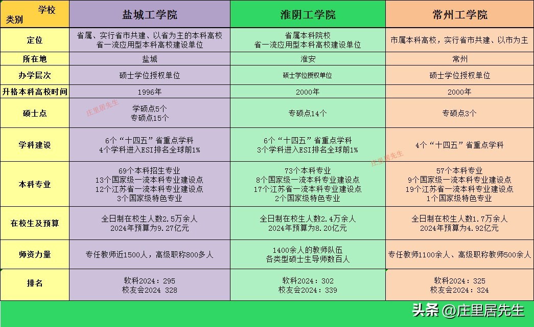 虽然优质本科专业占比会受整体规模的影响,但结合总量和质量来说,我认为盐工>淮工>常工院。