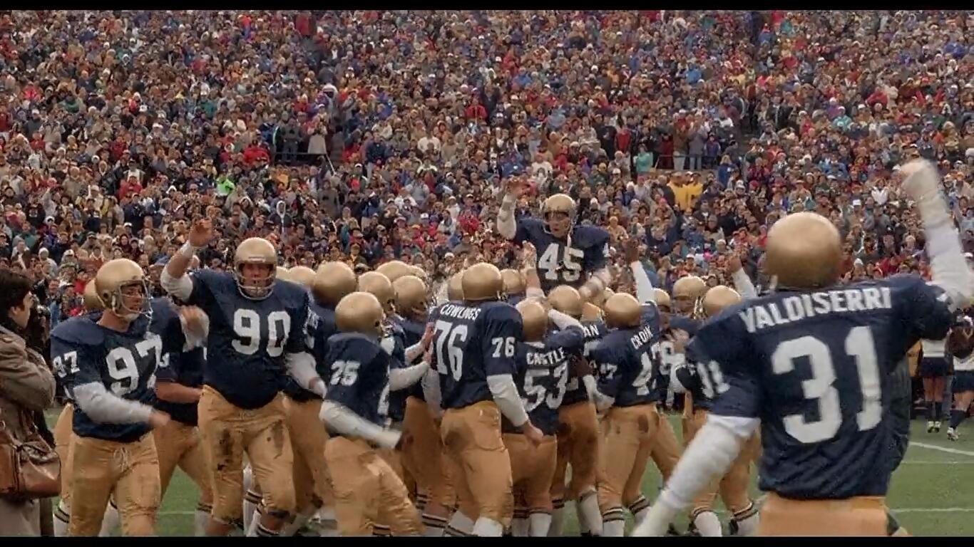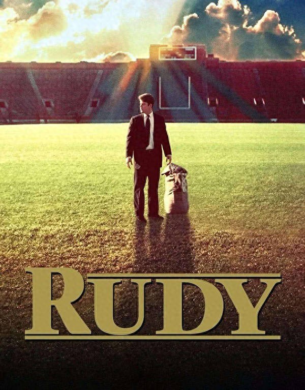 今天向大家推荐一部经典励志电影《追梦赤子心》,英文名叫《RUDY》,影片取材自一个真实的故事,影片中没有王者归来力挽狂澜的片段,只是讲述了主人公(一个美国普通家庭中名叫Rudy的平凡青年)为了自己的梦想(去诺特丹大学上场打橄榄球)做出的一点一点的努力,最后实现自己梦想的故事。主人公像大部分人一样资质平庸,运动天赋也一般,面对全美20所顶尖学府之一的诺特丹大学,唯一让他坚持下去的就是他自己的初心,其实影片到最后也没有出现凤凰涅槃的宏伟剧情,只是在自己的执着努力和所有队员及全场观众的帮助下,一直坐冷板凳从来没有上场的Rudy在毕业前最后一场比赛的垃圾时间上场了几秒钟,虽然只是几秒钟的垃圾时间,但对于Rudy来说却是完成了自己心中的梦想,让他的大学生涯画上了一个完美的句号,自己的人生也开启了新的篇章。