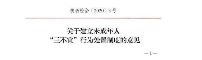 5月25日,杭州市西湖区检察院联合区公安分局、人社局、文化广电旅游局、市场监管局、商务局等10个部门联合会签《关于建立未成年人“三不宜”行为处置制度的意见》。