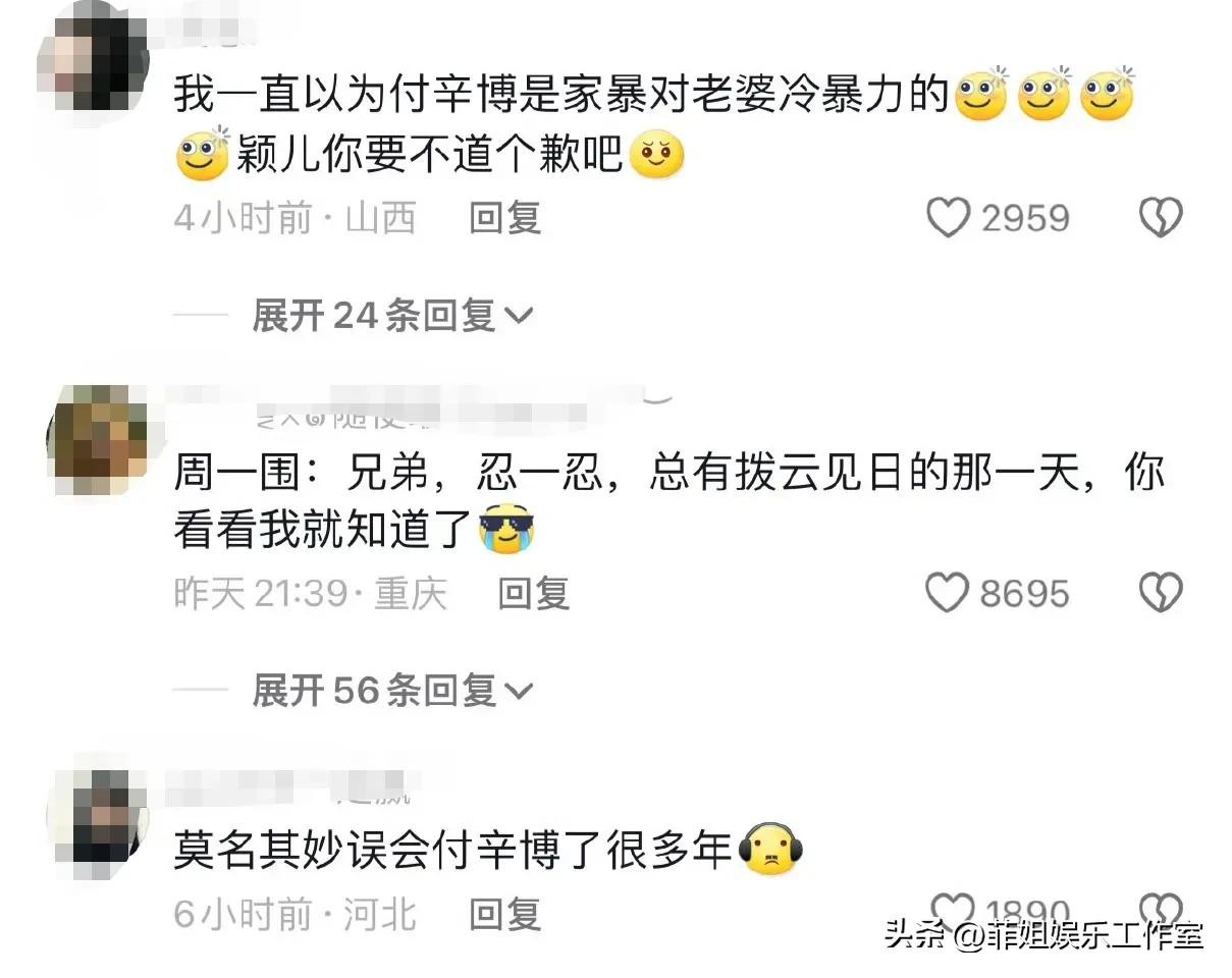 大家才知道原来大家都误会付辛博了,原来颖儿是朱丹2.0版,都是表达老公对自己不好,事实上他们一个比一个爱老婆。