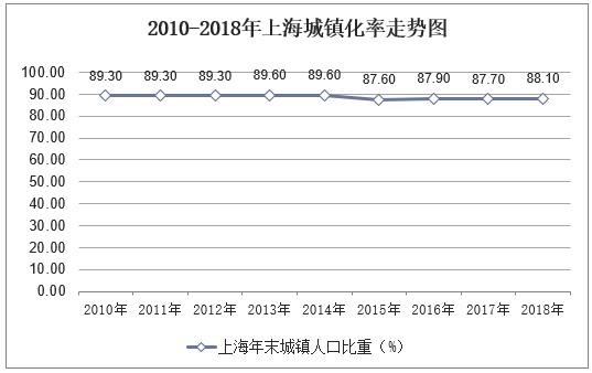 2018年上海城镇化率为88.1%,相比2017年增长了0.4个百分点。
