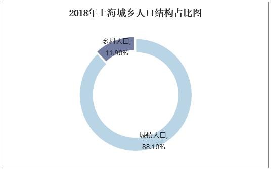 从人口城乡结构来看,2018年上海城镇人口数量为2136万人,占总人口比重的88.1%;乡村人口数量为288万人,占总人口比重的11.9%。